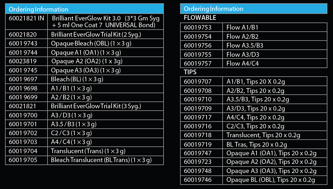 Shades Available: 4gm Syringe DENTINE : Al/Bl, A2/B2, A3/D3;