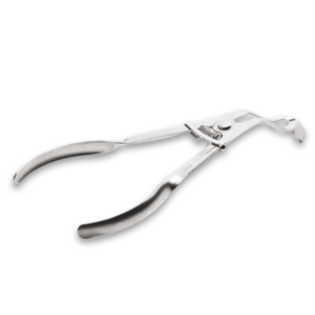 Dental Dam Forceps for secure transfer and fixation of Dental Dam clamps to the tooth.