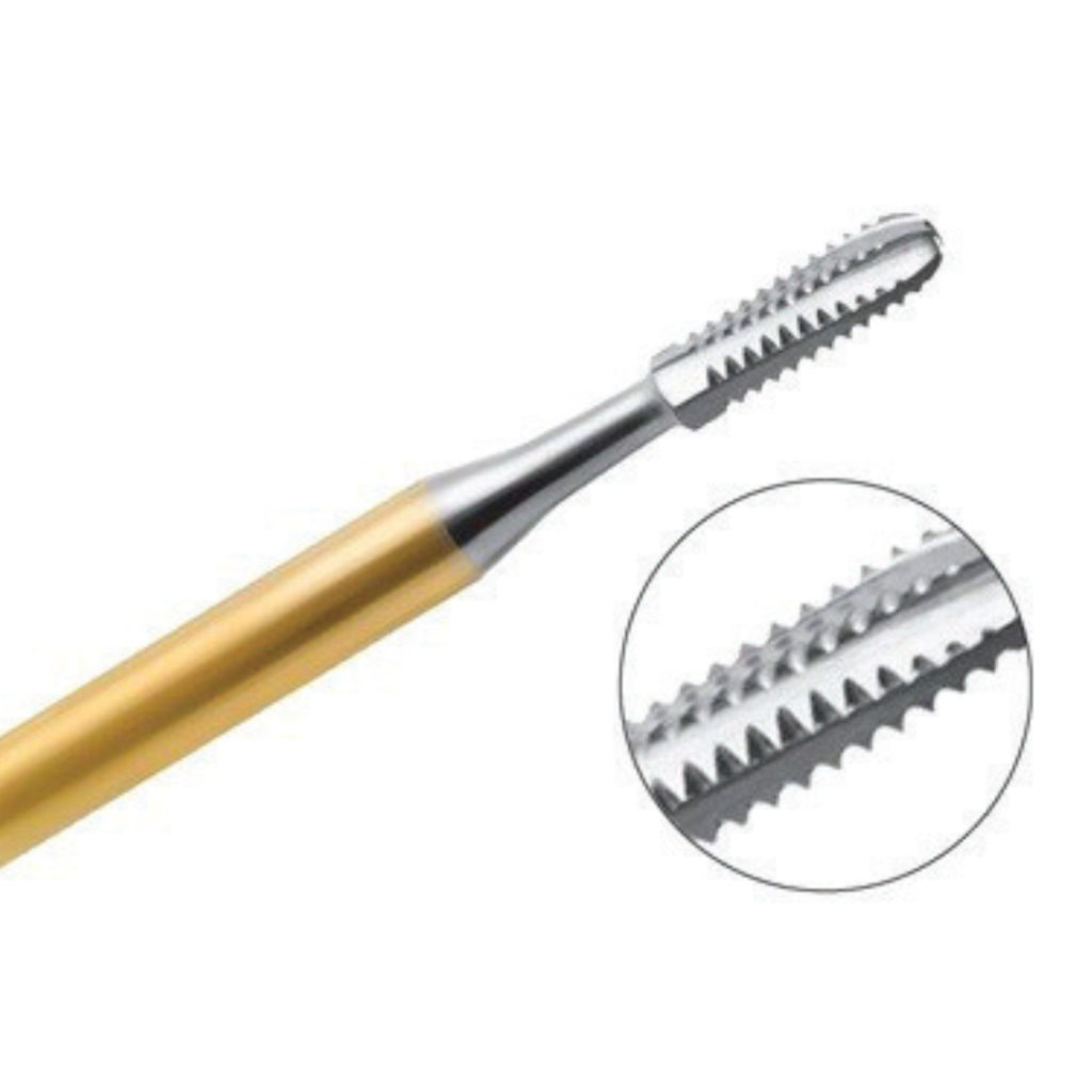Speedster burs are made from a solid piece of sub-micron grain premium carbide. Multi-Axial precision grinding processes implement carefully designed angulations, depths, rake angles, and blading for optimal geometry and cutting performance.